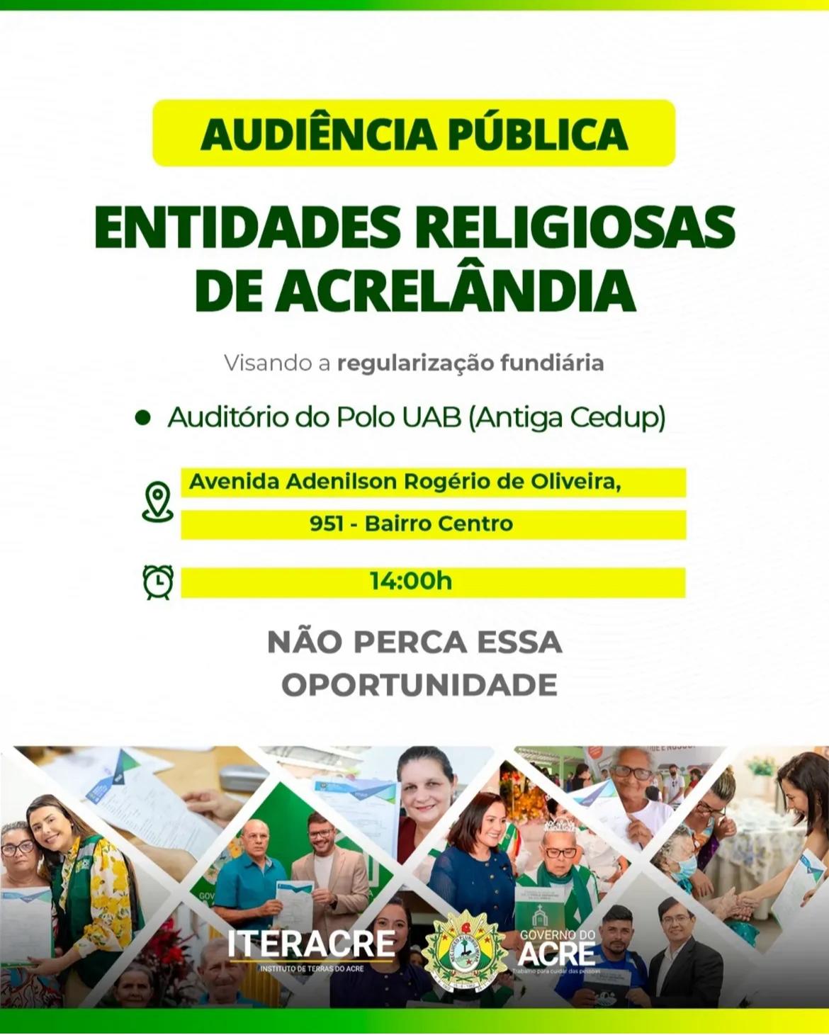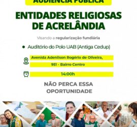 Na tarde desta segunda-feira, 19, o município de Acrelândia sediou uma audiência pública voltada à regularização fundiária de entidades religiosas. O encontro, realizado no auditório do Polo da [...]