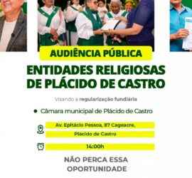 Na tarde desta terça-feira, 20, a Câmara Municipal de Plácido de Castro foi palco de uma audiência pública voltada à regularização fundiária de entidades religiosas. Promovida pelo governo do [...]