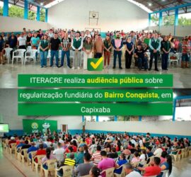 Nesta quarta-feira, 30, o Instituto de Terras do Acre (ITERACRE) realizou uma audiência pública no município de Capixaba para tratar da regularização fundiária do Bairro Conquista.