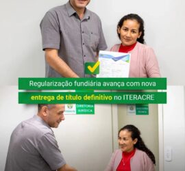 Nesta quinta-feira, 3 de julho, o Instituto de Terras do Acre (ITERACRE) realizou a entrega de mais um título definitivo de propriedade. O beneficiado foi o senhor Francisco Feitosa, de 71 anos, [...]