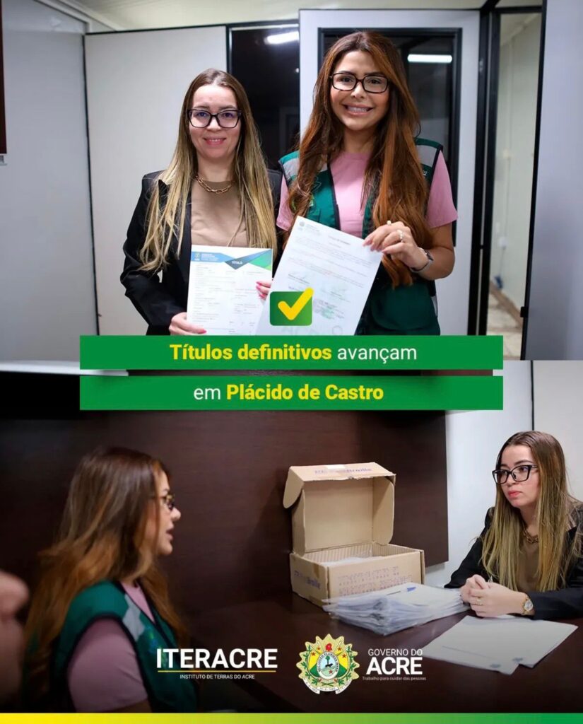 Na manhã desta segunda feira, 1º de setembro, o Instituto de Terras do Acre (ITERACRE) esteve no município de Plácido de Castro, no cartório local, para a retirada de 337 títulos definitivos já registrados e prontos para chegar às mãos da população.