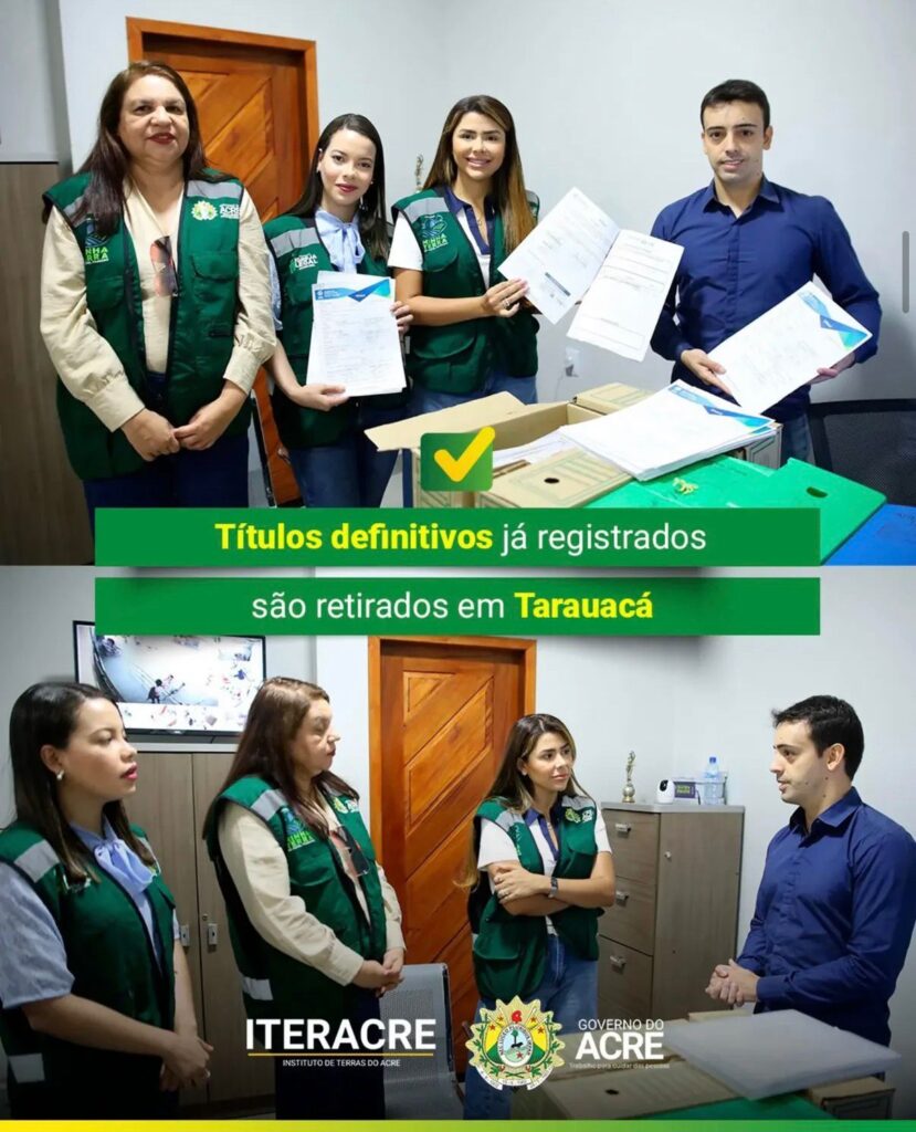 Na manhã desta quinta-feira, 28, o Instituto de Terras do Acre (ITERACRE) esteve em Tarauacá para realizar a retirada dos títulos definitivos que concluíram todo o processo de registro em cartório.